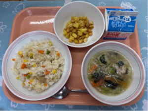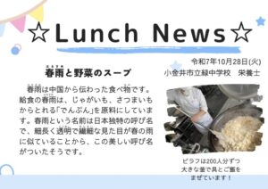 春雨は中国から伝わった食べ物です。給食の春雨は、じゃがいも、さつまいもからとれる「でんぷん」を原料にしています。春雨という名前は日本独特の呼び名で、細長く透明で繊細な見た目が春の雨に似ていることから、この美しい呼び名がついたそうです。