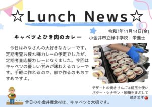 今日はみなさんの大好きなカレーです。定期考査お疲れ様カレーの予定でしたが、定期考査応援カレーとなりました。今回はキャベツの優しい甘みが味わえるカレーです。手軽に作れるので、家で作るのもおすすめですよ。